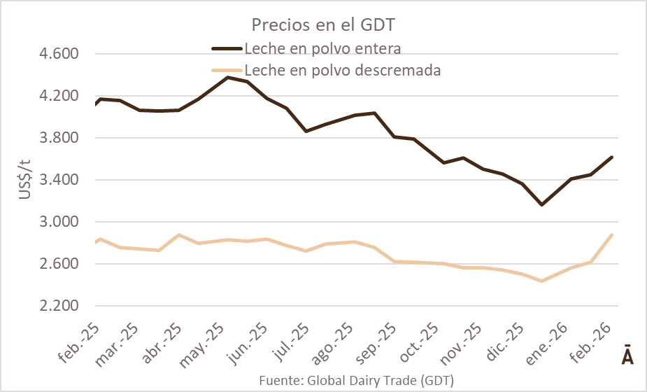 Leche en polvo entera subió más de US$/t 400 y está en máximos desde setiembre