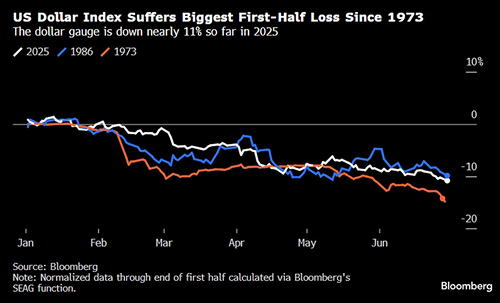 Este desplome se aceleró esta semana después de que Donald Trump negociara una tregua entre Irán e Israel, poniendo fin a una de las mayores crisis geopolíticas del año. En la mayoría de los casos, el dólar estadounidense tiende a caer cuando concluyen los principales acontecimientos geopolíticos, ya que pierde su condición de refugio seguro.