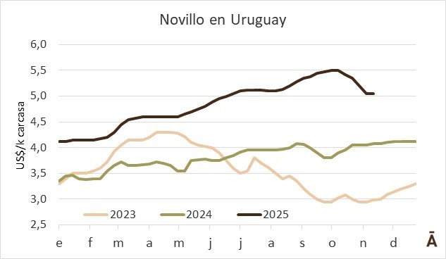 Agregó que el mercado uruguayo libre y competitivo permite que los precios se ajusten naturalmente, sin necesidad de intervenciones. “Era previsible que tanto el valor de reposición como el valor del gordo se habían ido un poco de las pautas normales. Eso nos permite hablar de que tenemos un mercado libre, donde las reglas de juego son claras y hay que adaptarse”, sostuvo.