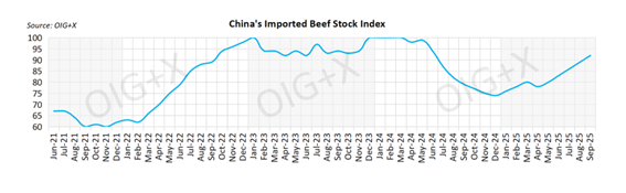 De acuerdo con el índice de OIG+X, que publica mensualmente, en setiembre el stock de carne vacuna importada creció por quinto mes consecutivo.