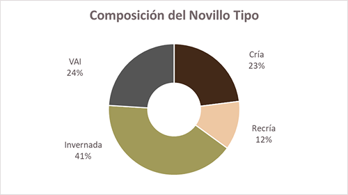 Durante mayo, el valor agregado industrial y la invernada incrementaron su participación porcentual en la composición del Novillo Tipo, mientras que los dos eslabones anteriores perdieron terreno. En este sentido, el Instituto Nacional de Carnes (INAC) dio a conocer el valor del Novillo Tipo para el mes de mayo, el cual ubicó en US$ 1.719, con un aumento del 2,6% respecto a la referencia de abril (+US$ 44). Dentro de este indicador los dos grandes componentes informados por el instituto son el valor de la hacienda (el novillo gordo) y el valor agregado industrial (VAI: costos y beneficios de la industria).
