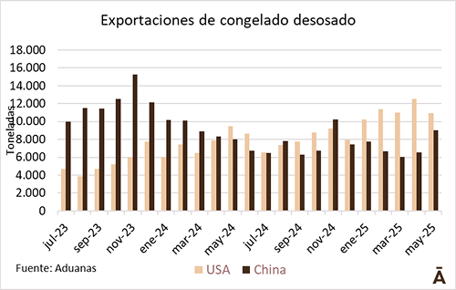 La incertidumbre provocada por el aumento de los aranceles de importación de Estados Unidos y la mejora de los precios de exportación a China hicieron crecer los embarques a este último destino y disminuir las colocaciones en el primero. De acuerdo con datos de solicitudes de exportación de Aduanas, en mayo Uruguay embarcó 13.443 toneladas de carne vacuna fresca a China y 11.508 toneladas a Estados Unidos. Respecto a abril, el volumen enviado a China creció en más de 3.000 toneladas y el de EEUU se redujo en unas 1.500 tons.