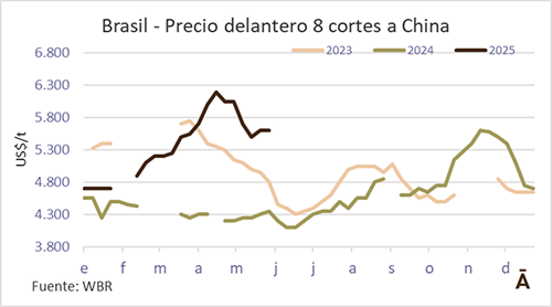 Tras la finalización de una nueva edición de la Sial Shanghái, la corriente comercial de Brasil con China mantuvo cierta “fluidez” y con una “demanda firme”, comentó un trader brasileño en diálogo con World Beef Report (WBR). “Hoy el mercado pauta cierta estabilidad, no veo ánimo ni motivación para subir los precios”, consideró la fuente. Los valores de referencia para el delantero se mantuvieron sobre un eje de US$/t 5.600-5.650 CFR, a juicio de un bróker, aunque un exportador aseguró haber vendido hasta US$/t 5.800 en la Sial y la rueda a US$/t 6.500 CFR.