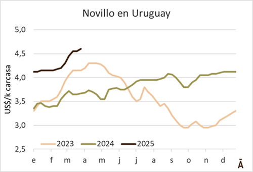 “Los precios de la hacienda y la reposición siguen muy firmes”, dijo a Informe Tardáguila el operador Juan Vera. El intermediario manejó valores de US$ 4,60 por kg para el novillo gordo especial y de US$ 4,30 para las mejores vacas. Como es habitual, siempre se puede “pelear algún centavo más sobre esas referencias”, al tiempo que hay productores que optan por esperar alguna mejora adicional en los próximos días. Sobre las vaquillonas, el abasto sigue “demandado”, con valores sobre un eje de US$ 4,40-4,50.