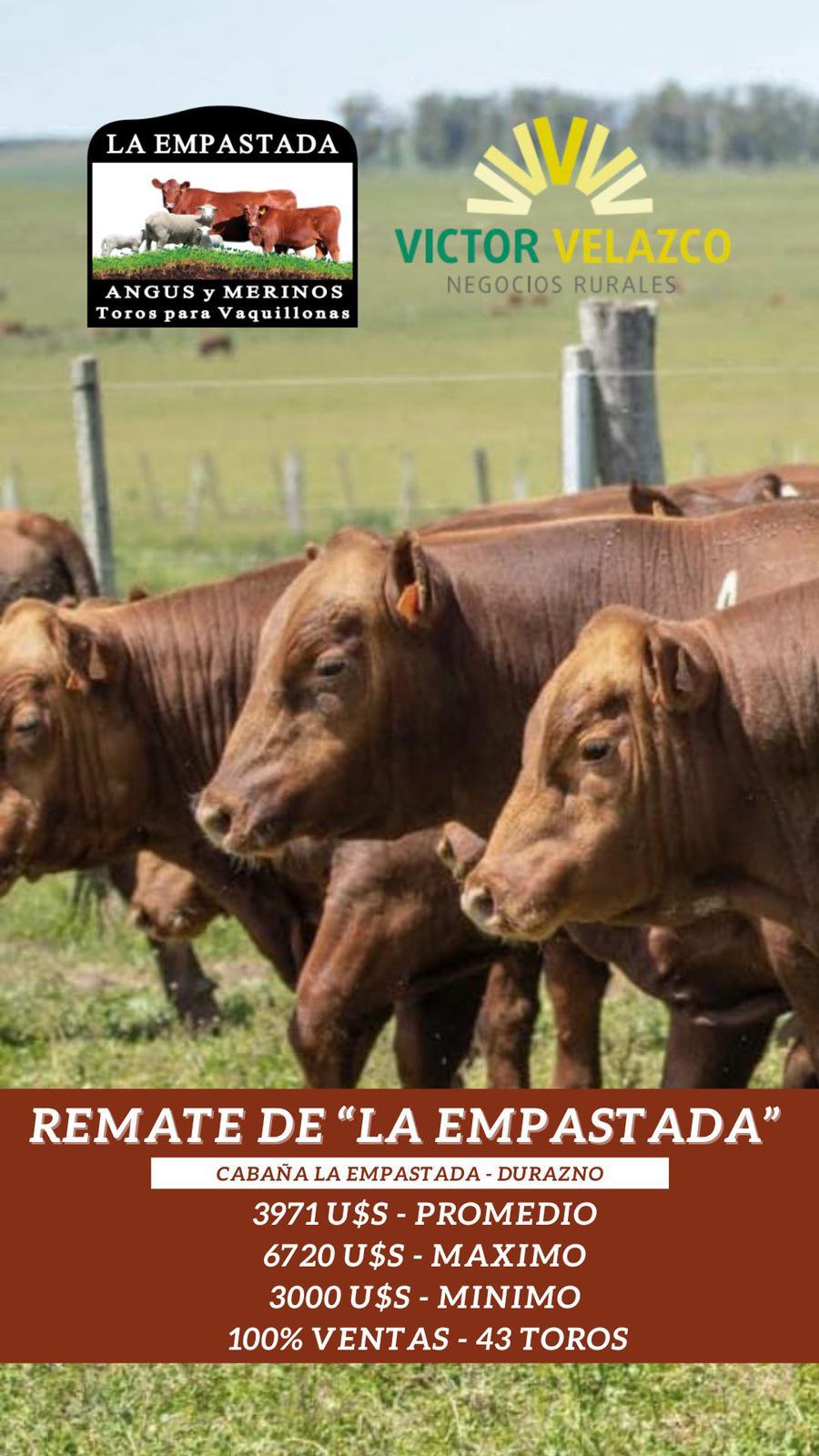 Los 43 toros (30 de 2 años, 11 de 18 meses y 2 de 15 meses) promediaron US$ 3.971, con un máximo de US$ 6.720 y mínimo de US$ 3.000. “Una vez más, la producción se vendió a razón de toro por minuto”, señaló Velazco al cierre de la subasta.