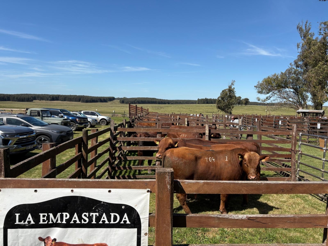 En el tercero de los seis remates previstos para esta zafra, la cabaña La Empastada, del Ing. Agr. Javier Fillat y familia, dispersó los 42 toros Red Angus ofertados en la Liga de Trabajo de Fraile Muerto, con un promedio de US$ 4.014, alcanzando un máximo de US$ 5.520 y un mínimo de US$ 3.480.