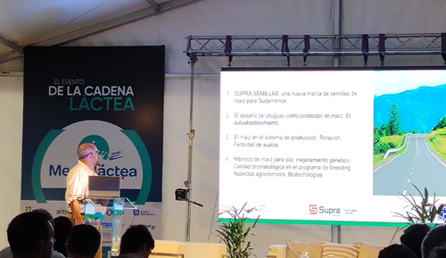 El cultivo de maíz tiene un “potencial de crecimiento enorme en Uruguay”, y está probado que el cultivo puede extenderse a otras regiones por fuera del cinturón más agrícola del país como el este. Así lo aseguró el gerente comercial de Supra Semillas para Uruguay, Gonzalo Bravo, en el marco de una charla organizada en la última edición de la Mercoláctea junto a Procampo Semillas, la empresa que tiene su representación local. Supra Semillas surgió de la fusión generada tras la adquisición que hizo GDM (Grupo Don Mario) del negocio de maíz en Sudamérica de la alemanda KWS. GDM es el responsable del 45% de la semilla de soja que se planta en el mundo, y ahora pretende pisar fuerte en el cultivo de maíz en Argentina, Brasil, Uruguay y Paraguay.
