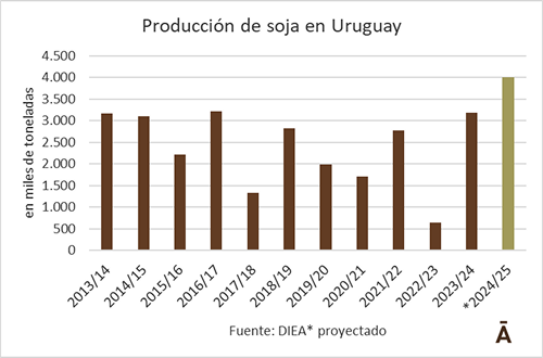 “Esta va a ser una cosecha de esas que no te vas a olvidar fácil, por el volumen y la poca logística que hay”, dijo a Informe Tardáguila Joaquín Basso, responsable de negocios de granos de Cargill Uruguay. El ejecutivo explicó que con el cosechón histórico de soja que se está levantando el libro de barcos que cargó soja en Uruguay hasta la primera quincena de mayo “fue insignificante”, con apenas tres barcos. Según datos de Aduanas, en el parcial de mayo figuran solicitudes de exportación por unas 383 mil toneladas de soja a un precio de US$/t 390.