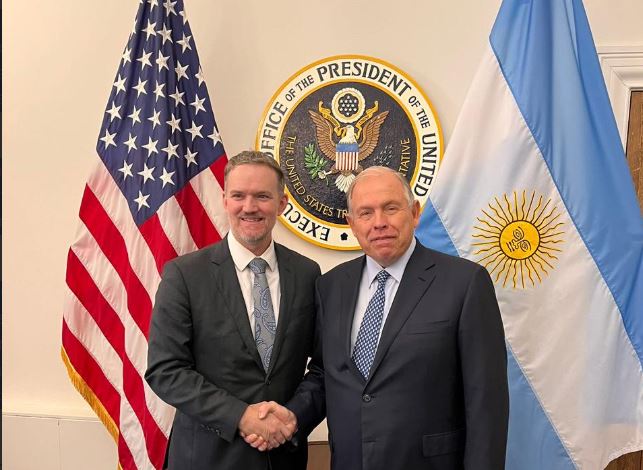 Tras la reciente reunión entre los presidentes Javier Milei y Donald Trump, que consolidó la alianza estratégica entre ambos países, el ministro de Relaciones Exteriores, Comercio Internacional y Culto de la República Argentina, Gerardo Werthein, mantuvo este lunes en Washington D.C. un encuentro de trabajo con el Representante Comercial de los Estados Unidos, Embajador Jamieson Greer, orientado hacia la conclusión del acuerdo comercial bilateral.