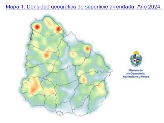 El monto total de las operaciones ascendió a los US$ 120 millones aproximadamente, con un precio promedio de US$/ha/año 129. Los departamentos con más superficie arrendada fueron, por su orden, Artigas, Salto y Tacuarembó, y los departamentos con los registros de mayor precio medio de renta fueron Soriano, Colonia y San José.