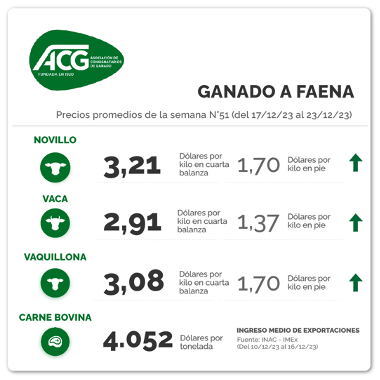 Con una “oferta retraída”, el mercado de gordo sigue “firme”, dijo la ACG en su reunión semanal de precios de este martes por el feriado de Navidad del lunes.