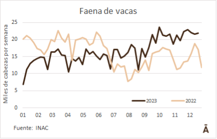 La faena de vacunos sufrió una leve caída la semana pasada que no le impidió sostenerse por encima de las 50 mil cabezas por décima semana consecutiva. INAC informó que ingresaron a planta 52.762 vacunos, unos 2 mil menos que en la anterior, pero más de 7 mil por encima de la misma semana del año pasado.