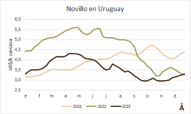 La arremetida final de la faena de vacunos en Uruguay durante 2023 redujo sensiblemente la caída respecto al año anterior, a lo que se suma un aumento en el peso medio de las carcasas para determinar una contracción de la producción de carne de solo 2,5% en el año.