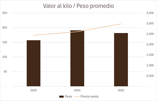 En lo que va del año 2025, en los tres principales consorcios de remates por pantalla, entre enero y ayer en el remate Select de Pantalla Uruguay, se han comercializado 47.104 terneros (machos) con un peso promedio de 182 kilos por cabeza. Este volumen supone un crecimiento de 13.277 cabezas lo comercializado en igual período de 2024 y en más de 15.700 terneros las ventas de 2023. El mayor volumen de comercialización tiene cierte lógica dada una generación de terneros que rondará los 3,1 millones de cabezas en este ejercicio.