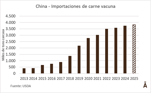 La oficina del USDA en Beijing mantiene la expectativa de un aumento en las importaciones de carne vacuna por parte de China en 2025, impulsado por la previsión de una disminución en la producción nacional de carne vacuna y de cerdo.