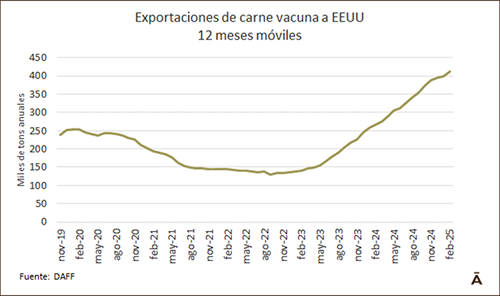 La faena de vacunos en los dos primeros meses del año aumentó y, sin embargo, las dos categorías que contribuyen con más cabezas al total (novillos 2-4 dientes y vacas de refugo) disminuyeron. En el último año y medio se ha dado un aumento en la edad media de faena de los novillos, ya que la disminución de los de 2-4 dientes vino de la mano de un aumento de la faena de animales de más edad. Sin embargo, esto no se transformará en una tendencia y se revertirá de forma relativamente rápida.