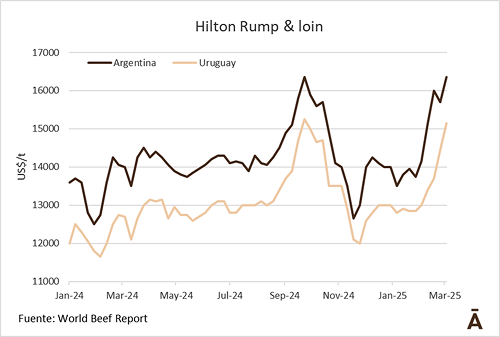 De acuerdo con datos que se manejan en INAC, al 28 de febrero se había cumplido 66% de la cuota Hilton 2024/25, 10% menos que lo que se llevaba a esta altura del ejercicio pasado. Con una cuota total de unas 5.700 toneladas (bajó desde que al Reino Unido se fue de la UE y quedó con parte del cupo para sí), significa que quedan por cumplir unas 1.880 toneladas.