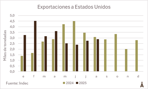 Las exportaciones de carne vacuna argentina a Estados Unidos volvieron a crecer en agosto por segundo mes consecutivo, pero aún no se acercan a los niveles del primer cuatrimestre, pese a que se esperaba que con los altísimos aranceles a la carne brasileña en ese mercado los envíos argentinos se aceleraran.