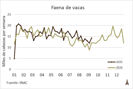 En los primeros 13 días de setiembre se faenaron 84.886 vacunos, 22% más que en los mismos días de 2024.