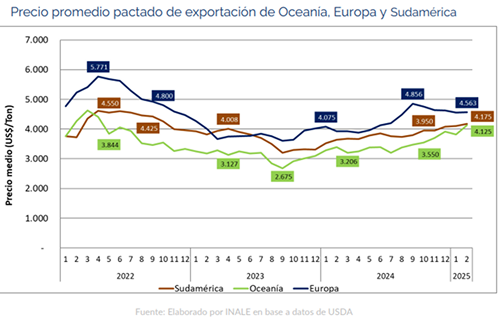 De acuerdo a datos aduaneros, las solicitudes de exportación de productos lácteos en febrero de este año totalizaron unas 19.500 toneladas por unos US$ 72 millones. El valor medio de exportación para todos los productos se ubicó US$/t 3.670. En febrero de 2024, Uruguay había exportado unas 15 mil toneladas de productos lácteos a un precio medio de US$/t 3.370, lo que totalizó unos US$ 52 millones.