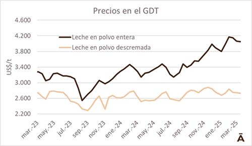 La segunda licitación de marzo del GDT tradicional de Fonterra cerró con precios estables en el promedio de todos los productos este martes, con un valor medio de US$/t 4.245. El volumen comercializado fue de 19.540 tons, la menor cantidad desde junio del año pasado.