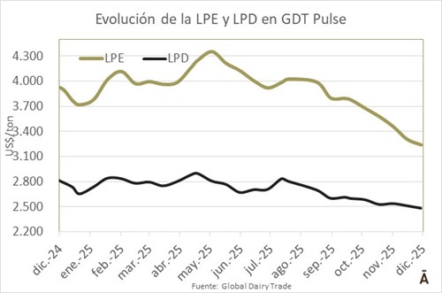 El piso para la cotización internacional de los lácteos parece no encontrase. En la licitación de esta semana del sistema GDT Pulse de Fonterra, se registró el noveno descenso consecutivo para la leche en polvo entera (-2%) con un precio medio de US$/t 3.243.