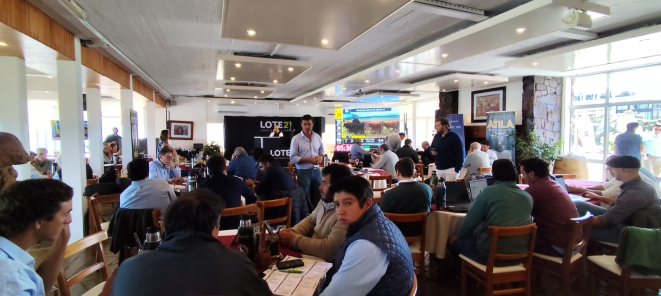 Con transmisión desde la Escuela de Alta Gastronomía de UTU, en Punta del Este, el consorcio Lote 21 concretó este miércoles su remate número 237, con una colocación del 92% de la oferta de 6.000 vacunos y 1.000 lanares.