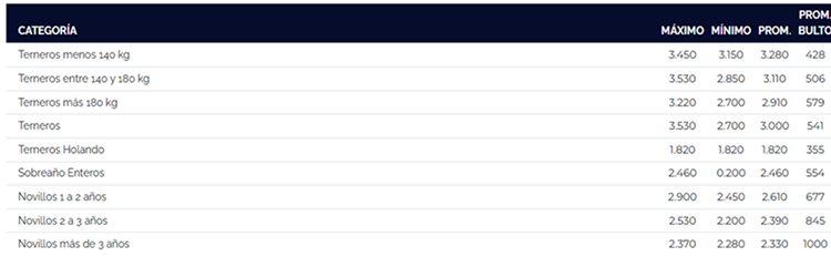 Con una fluida colocación (98%), Plaza Rural colocó durante su primer día de su remate 300 unos 4 mil terneros a un valor promedio de US$ 3,14 por kg en pie (US$ 545 al bulto). Respecto al remate de febrero, esta categoría se incrementó 9% al kg y 6% al bulto.