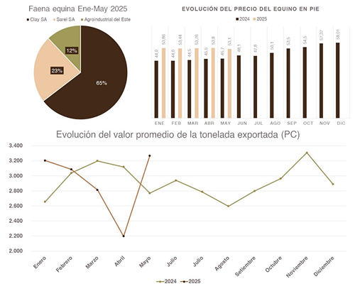 El sector cárnico equino continúa consolidando una tendencia al alza durante 2025, tanto en términos de faena como de exportaciones, con impactos positivos sobre los ingresos por divisas y los precios al productor, según los datos divulgados por el Instituto Nacional de Carnes (INAC) para el período comprendido entre enero y mayo.